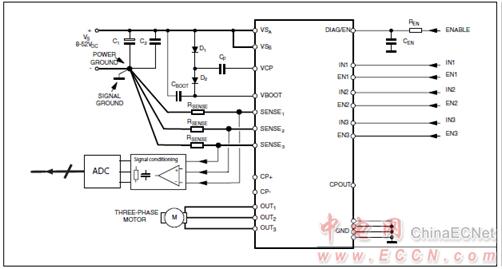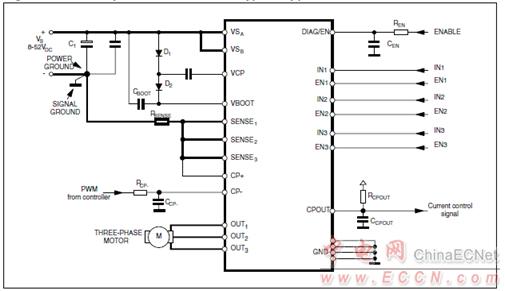 圖2.L6230磁場定向控制(FOC)應(yīng)用電路