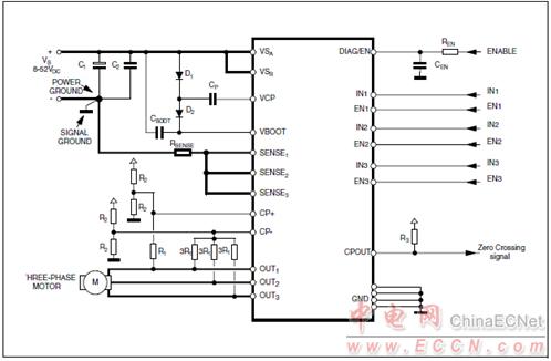 圖3.L6230六步電流控制應(yīng)用電路
