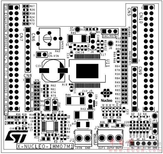 圖11.馬達(dá)控制平臺P-NUCLEO-IHM001 PCB頂層元件布局圖