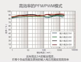 該模式在負(fù)載變動時可自動切換PFM和PWM,從而在整個負(fù)載范圍內(nèi)可實現(xiàn)達(dá)90%的高效率。非常適用于智能手機和平板電腦等工作切換頻繁、重視效率的應(yīng)用。