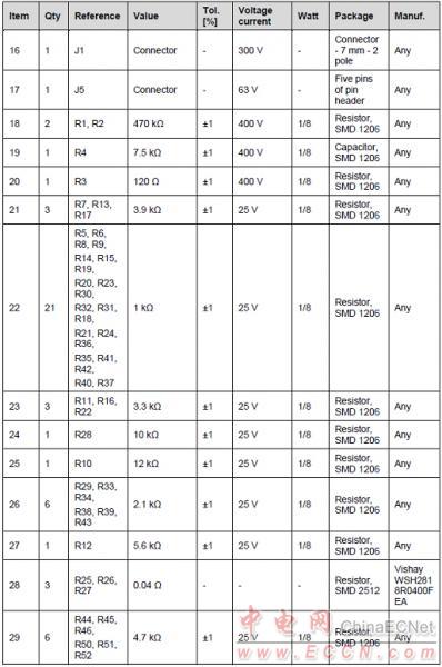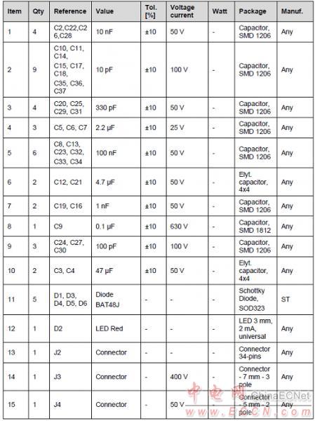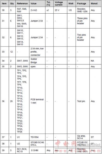 馬達(dá)控制電源板STEVAL-IPM15B材料清單:
