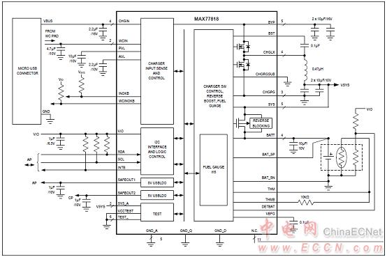 The safeout LDO drive system USB interface devices.The MAX77818 features a I2C revision 3.0-compatible serial interface that comprises a bidirectional serial data line(SDA) and a serial clock line (SCL).