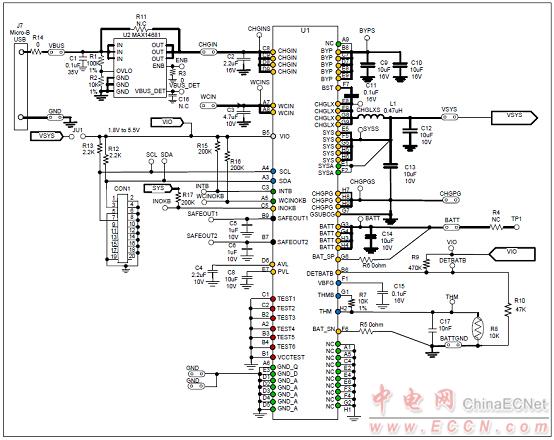 圖4.MAX77818評(píng)估系統(tǒng)電路圖