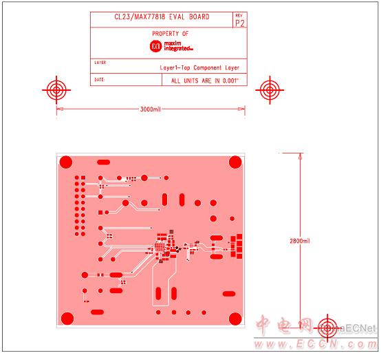圖6. MAX77818評(píng)估系統(tǒng)PCB布局圖:頂層