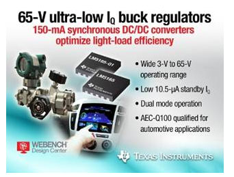 TI公司65V微功率降壓轉(zhuǎn)換器具有業(yè)界最低的靜態(tài)電流