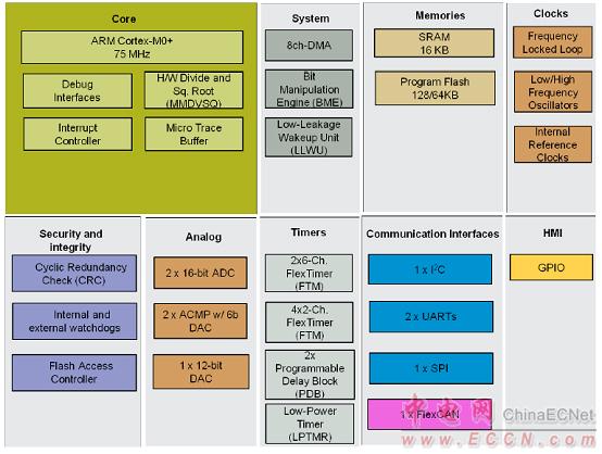 The Kinetis V Series KV11x MCU family is built on ARM Cortex-M0+ core and enabled by innovative 90nm thin film storage(TFS) flash process technology. The KV11x is an extension ofthe existing KV10x family providing increased memory, higherpin count, additional FTMs and a FlexCAN serial interface.