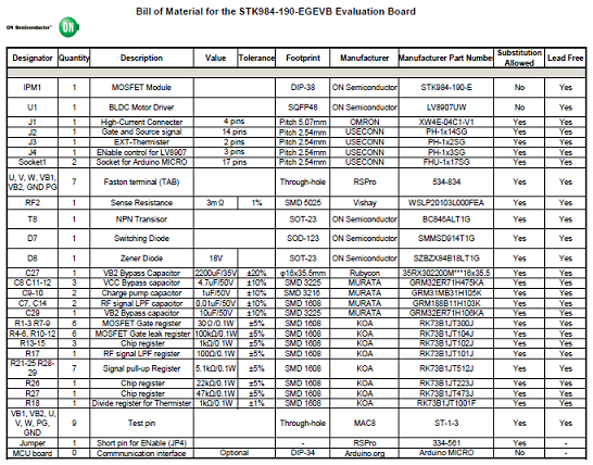 評估板STK984-190-EGEVB材料清單: