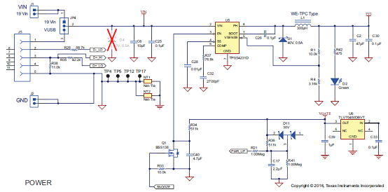 圖8.評估板bq501210EVM-756電路圖:電源電路