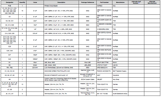 5.6W D類音頻放大器評估模塊TAS2560 EVM材料清單:
