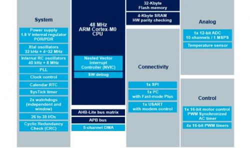 圖示4-USB Type-C移動(dòng)電源之32位MCU-STM32F030K6系統(tǒng)架構(gòu)圖