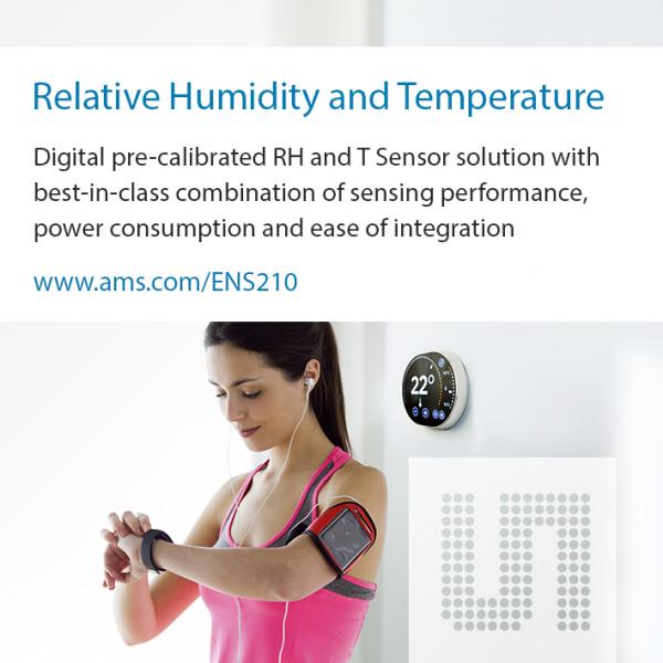 當用于可穿戴設備時,ENS210的相對濕度和環(huán)境溫度讀數(shù)有助于提高對環(huán)境條件依賴性極高的身體運動測量的精確性和可靠性。它也可以為溫度調(diào)節(jié)器以及諸如空調(diào)和凈化系統(tǒng)、冰箱、干衣機、微波爐、廚房抽氣機和天氣監(jiān)測裝置等互聯(lián)家用電器提供精巧的自動化操作或性能提升功能。