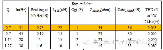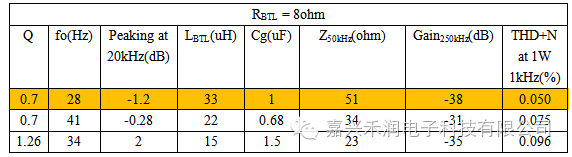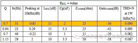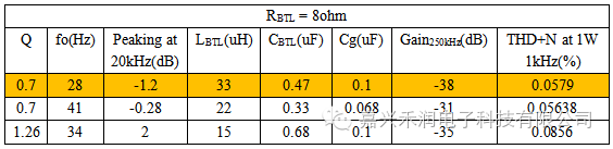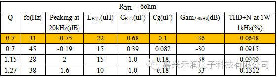 表1 傳統(tǒng)調(diào)制方式8ohm負(fù)載的LC濾波