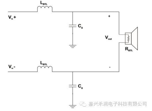 對(duì)于免濾波調(diào)制方式的D類音頻功放,可使用如下LC濾波。