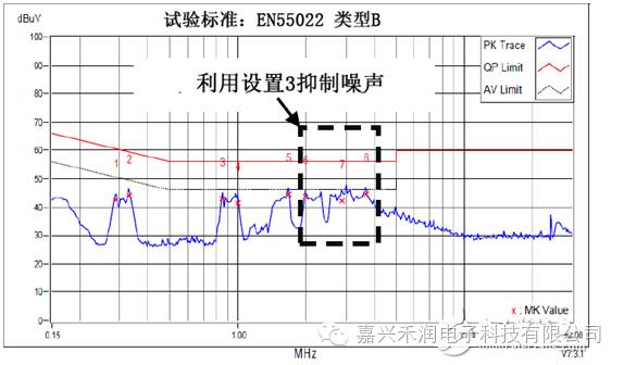 圖9 振蕩加劇2MHz~4MHz 頻帶噪聲(設(shè)置4)