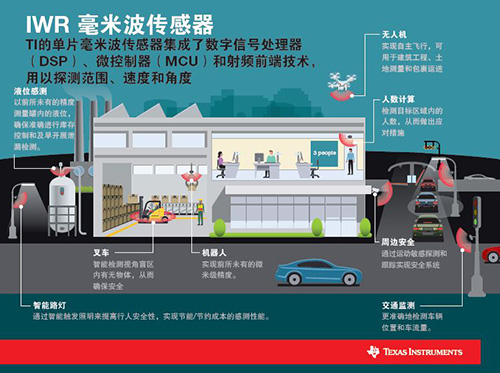 為了應對工廠、樓宇自動化系統(tǒng)和智能基礎設施中對于更高效率的需求,開發(fā)人員現(xiàn)在能夠充分利用TI的智能化且穩(wěn)健耐用的毫米波傳感器產(chǎn)品組合。此外,在一些需求不斷增長的應用領域,如醫(yī)療設備、箱內(nèi)液位感測、機器人視覺和無人機等,這項感測技術可用于改造現(xiàn)有的一些功能。TI的IWR1x 毫米波非接觸式傳感器不受環(huán)境中的光照、降雨、灰塵、下霧或霜凍的影響,這使它們在室內(nèi)或室外都能穩(wěn)健運行。通過確定設備周圍物體的所處范圍、速率和角度,這些傳感器能立即適應動態(tài)變化的場景。