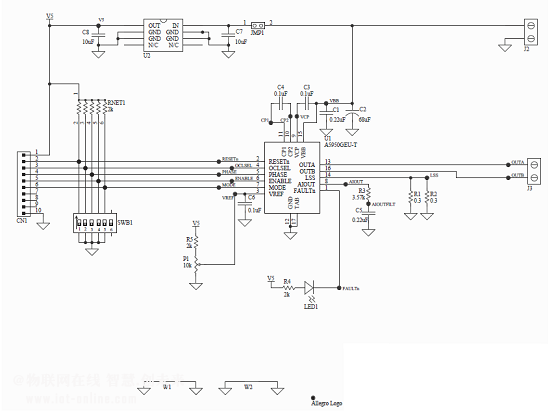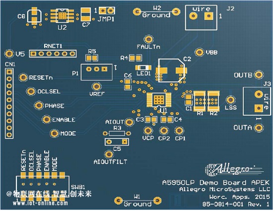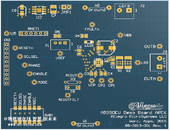 Allegro MicroSystems公司的A5950是脈寬調(diào)制(PWM)控制的直流馬達(dá)驅(qū)動(dòng)器,峰值電流高達(dá)±3 A,工作電壓高達(dá)40V,內(nèi)部保護(hù)電路包括過(guò)流保護(hù),馬達(dá)線對(duì)地或?qū)﹄娫幢Wo(hù),帶滯后的熱關(guān)斷,VBB欠壓監(jiān)視和過(guò)流保護(hù),故障輸出.本文介紹了A5950主要特性和優(yōu)勢(shì),功能框圖以及A5950EU(QFN封裝)演示板和A5950LP(eTSSOP封裝)演示板的電路圖,材料清單和PCB設(shè)計(jì)圖.