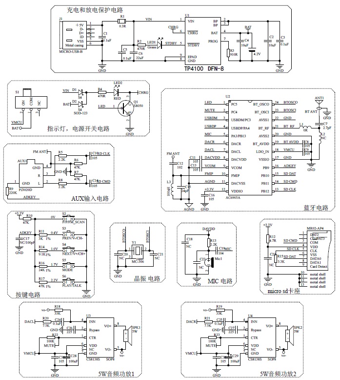 鋰電池充電保護二合一TP4100,4101藍(lán)牙音箱應(yīng)用案例