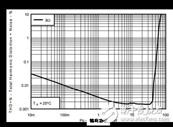 上一代的D級放大器實(shí)現(xiàn)了0.03% (-70dB)的總諧波失真+噪聲,相比之下,擁有相似輸出功率的AB級放大器的總諧波失真為0.005% (-86dB),如圖2所示。圖3顯示了同樣的對比,但它使用了TI最新的高功率D級放大器。此前,雖然D級放大器在高功率水平時(shí)的效率要提高大約1.5倍,因此和相似功率的AB級放大器相比不需要很多散熱,但對于高清音頻,人們并不會(huì)考慮使用D級放大器。