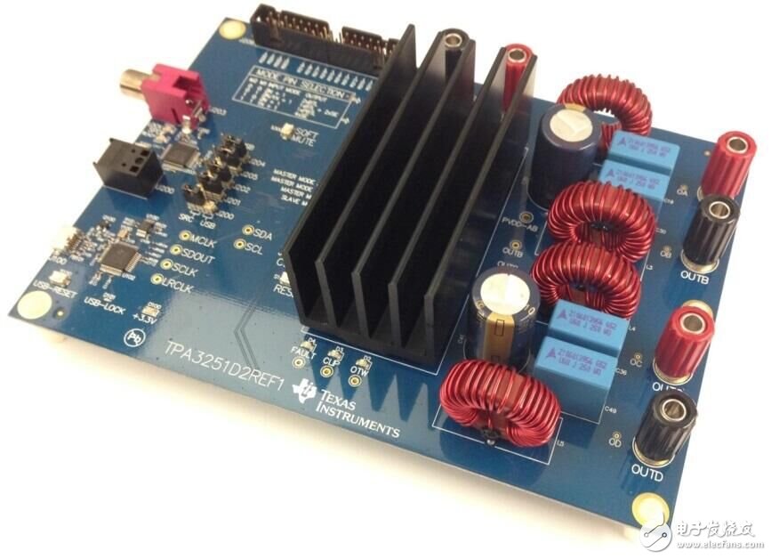 圖4中所示的TIDA-00874顯示了TPA3251D2和高清系統(tǒng)數(shù)字引擎之間共生、和諧的關(guān)系。如果您想用D級放大器進(jìn)行設(shè)計(jì),TI的這款參考設(shè)計(jì)---TIDA-00874能夠幫到你,它將PCM5242音頻DAC與TPA3251D2 D級音頻放大器配對,能夠流取樣率高達(dá)192kHz的多數(shù)字輸入音頻格式,增強(qiáng)音效體驗(yàn)。
