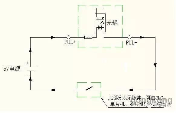 3)另請(qǐng)注意當(dāng)信號(hào)電壓不是5V,需接電阻來(lái)限定電流時(shí),方向與脈沖的回路中都應(yīng)有各自的限流電阻而不要去共用一個(gè)電阻。