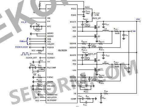 圖3 帶PMBus控制的ISL78229的典型應(yīng)用