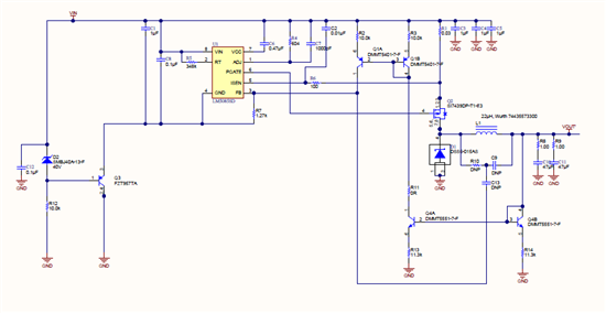 式中,VOUT = 12V,Rfb1 = 11.3k,Vbe為~0.7V。