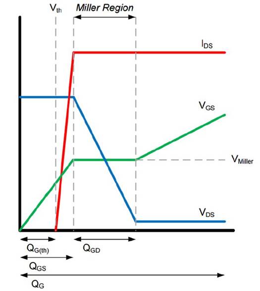 使用DRV8701為兩相逆變器中的MOSFET提供柵極信號(hào)可以實(shí)現(xiàn)使用IDRIVE設(shè)置選擇ISINK和ISOURCE電流?刂频哪繕(biāo)ISOURCE和ISINK將調(diào)整提供給四個(gè)MOSFET的柵極的電流量H橋,并在沒(méi)有有源區(qū)和飽和區(qū)之間達(dá)到所需的轉(zhuǎn)換速率向設(shè)備提供過(guò)量的電流。如果MOSFET的轉(zhuǎn)換速率太低,該器件將花費(fèi)太多的時(shí)間在下面的圖所示的米勒地區(qū)。