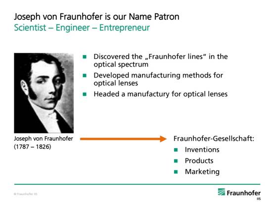 1949年創(chuàng)立于慕尼黑的Fraunhofer是世界領(lǐng)先的音頻及媒體技術(shù)研究機(jī)構(gòu),同時也是歐洲最大的應(yīng)用研究機(jī)構(gòu)。“Fraunhofer”名字的由來是為了紀(jì)念德國一位物理學(xué)家Joseph von Fraunhofer先生,F(xiàn)raunhofer先生不僅深入光學(xué)研究,同時完成成品的產(chǎn)業(yè)化以及市場的營銷。Fraunhofer正是秉承Fraunhofer先生的這種精神,不但要做好研究而且把產(chǎn)品推向市場。在近期舉辦的中國國際廣播電視信息網(wǎng)絡(luò)展覽會上,F(xiàn)raunhofer集成電路研究所亞太區(qū)市場及業(yè)務(wù)發(fā)展總監(jiān)Toni Fiedler先生向記者朋友分享了Fraunhofer的古往今來。
