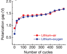 最近美國科學(xué)家等在鋰空電池的研究方面達(dá)成了突破,在《NATURE》上發(fā)文,成功制成了可在類空氣氣氛中循環(huán)超700次的電池,很好的解決了之前很多體系只能與純氧反應(yīng)、循環(huán)壽命很差(常常只有幾十次)的問題,在該領(lǐng)域的科學(xué)研究層面取得了重大進(jìn)展。在此,筆者將簡單介紹該文的研究進(jìn)展內(nèi)容,并簡要展望鋰空電池技術(shù)未來的工業(yè)化實(shí)用前景。