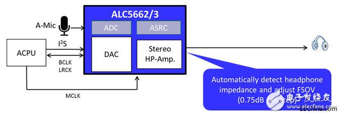 同時,ALC5662/ALC5663還內建充電泵(Charge pump),并將取樣頻率轉換器(Asynchronous Sample Rate Converter – ASRC)整合至芯片內,大幅減少了系統(tǒng)物料列表成本(BOM cost),也大幅降低系統(tǒng)上的設計復雜度,無須特別外加頻率震蕩器以及升壓降壓轉換器,就可以提供輸出直流偏壓為0V,輸出幅度為2Vrms的音頻。