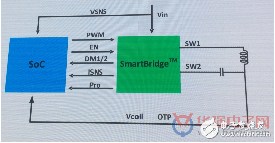該公司CEO王新濤介紹稱,Gen 2方案中SoC控制器的存儲(chǔ)提高了一倍,時(shí)鐘提高到了48M。第二代SmartBrige除了集成所有功率器件外,同時(shí)還集成了Q值檢測(cè)、數(shù)字解調(diào)、DC-DC、以及完全無(wú)損的電流采樣。
