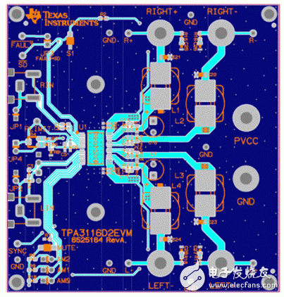 圖6. 評估板TPA3116D2EVM PCB布局圖 |