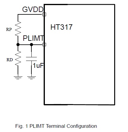 限幅值即在功率限制功能下,輸出擺幅被限制的最大值,該值可通過PLIMT引腳設(shè)置,如下圖所示。