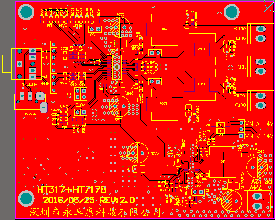 1,采用HT7178同步升壓轉(zhuǎn)換器。此設(shè)計(jì)10V-15V輸入電壓,可實(shí)現(xiàn)20V輸出,并且能夠?yàn)樨?fù)載提供5.2A連續(xù)電流;