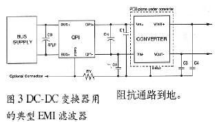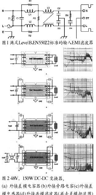 在DC-DC轉(zhuǎn)換器中的高頻大功率開關(guān)可能產(chǎn)生干擾信號。輸入電源線上的傳導(dǎo)噪聲可以差;蚬材T肼曤娏餍纬沙霈F(xiàn)。主要是低頻的差模噪聲,在基頻開關(guān)頻率和諧波頻率呈現(xiàn)在輸入電感上。共模噪聲主要有高頻分量,在轉(zhuǎn)移器輸入電感器和地之間量測,同樣,在開關(guān)DC-DC轉(zhuǎn)換器的輸出包含某種噪聲和紋波。恰當(dāng)?shù)卦O(shè)計和實現(xiàn)EMI(電磁干擾)濾波,可降低噪聲到可接受的限度內(nèi)。
