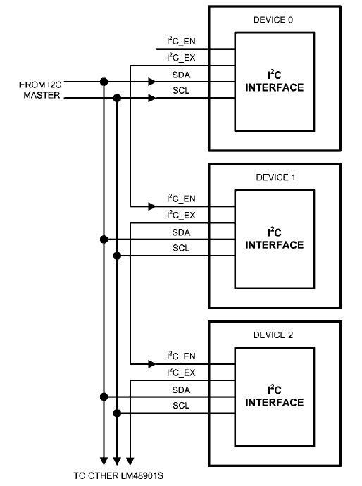 圖3.LM48901 I2C_EN/I2C_EX菊花鏈案例應(yīng)用電路