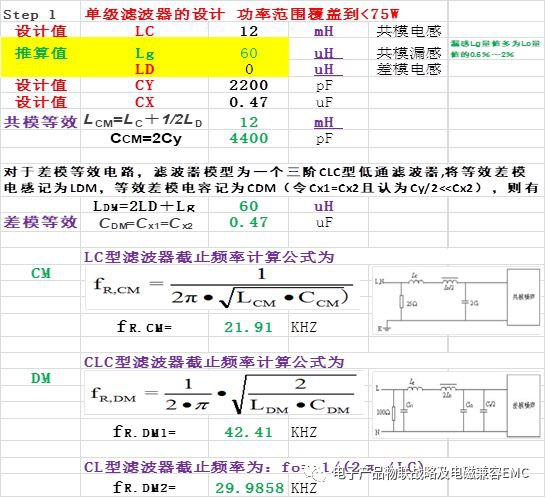 CM/DM 雜訊衰減- 濾波器截止頻率通過實(shí)踐數(shù)據(jù)為10KHZ-50KHZ ;其設(shè)計(jì)的濾波器能通用大部分的運(yùn)用設(shè)計(jì)!其參數(shù)理論計(jì)算數(shù)據(jù)如下: