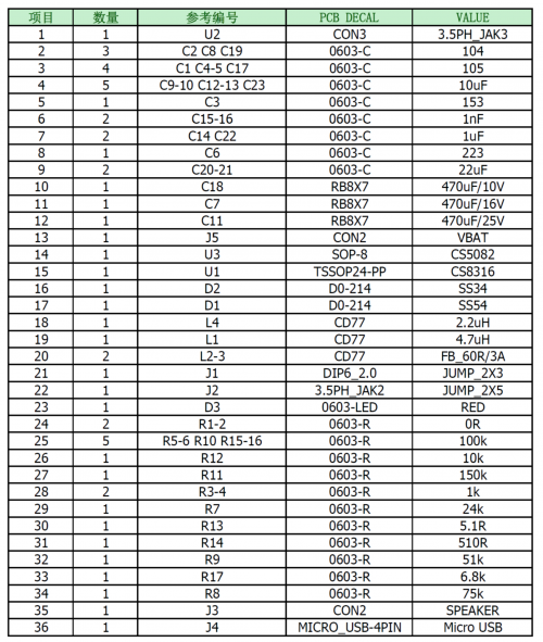 DEMO板物料清單