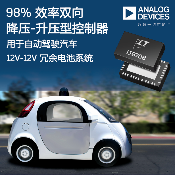 LT8708/-1 用于自動駕駛汽車12V-12V冗余電池系統(tǒng)的98%效率雙向降壓-升壓型控制器