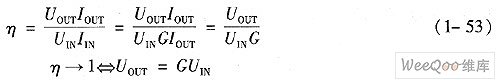 調(diào)壓電荷泵在一個寬的輸入范圍內(nèi)不能維持高的效率,因為輸入/輸出電流比是根據(jù)基本的電壓轉(zhuǎn)換進行調(diào)節(jié)的,任何比輸入電壓乘以電荷泵增益所得的值更低的輸出電壓將導(dǎo)致變換器內(nèi)額外的功耗,并且效率會成比例地降低,參考下式的說明。