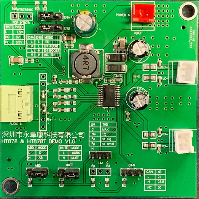 由此,深圳市永阜康科技有限公司推出單節(jié)鋰電池內(nèi)置自適應(yīng)升壓AB/D類(lèi)切換8W雙聲道音頻功放IC-HT878/HT878T,突破了單節(jié)鋰電池供電的局限性,為用戶提供極致的功率輸出,自帶的AB/D類(lèi)切換功能完美的解決FM收音干擾,其優(yōu)異的性能堪稱(chēng)現(xiàn)階段單節(jié)鋰電內(nèi)置升壓雙聲道音頻功放的巔峰之作。