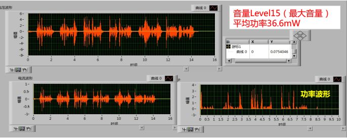 2、實(shí)際通話(112語音)時(shí),在最大音量播放的情況下,屏幕發(fā)聲激勵(lì)器的實(shí)際功耗在36.6mW左右