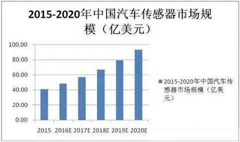目前中國是最大的汽車生產(chǎn)和消費國家, 所以中國自然是汽車傳感器應用大國。2016年我國汽車傳感器市場規(guī)模增長到48億美元, 預計到2020年將達到93億美元。