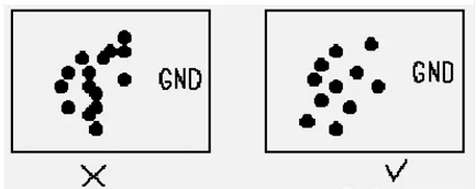 對(duì)應(yīng)地線回路規(guī)則,實(shí)際上也是為了盡量減小信號(hào)的回路面積,多見于一些比較重要的信號(hào),如時(shí)鐘信號(hào),同步信號(hào);對(duì)一些特別重要,頻率特別高的信號(hào),應(yīng)該考慮采用銅軸電纜屏蔽結(jié)構(gòu)設(shè)計(jì),即將所布的線上下左右用地線隔離,而且還要考慮好如何有效的讓屏蔽地與實(shí)際地平面有效結(jié)合。