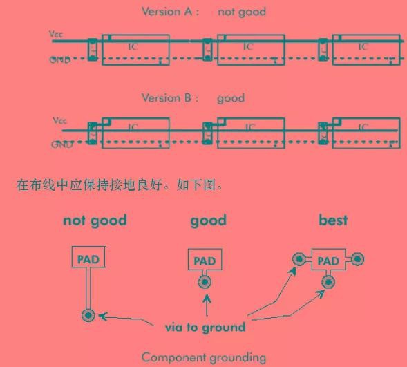 環(huán)路最小規(guī)則,即信號(hào)線與其回路構(gòu)成的環(huán)面積要盡可能小,環(huán)面積越小,對(duì)外的輻射越少,接收外界的干擾也越小。