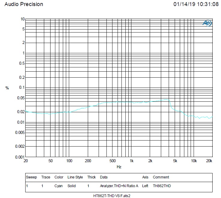 低頻FT2920比HT862T失真度小;中頻兩者接近;高頻HT862T比FT2920好。全頻段HT862T失真在0.04%以內(nèi),F(xiàn)T2920失真度超過0.1%;
