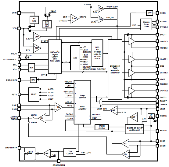Serial communication through SMBus/I2C allows programming of many critical parameters to deliver a customizedsolution. These programming parameters include, but are not limited to, adapter current limit, charger current limit,system voltage setting, and trickle charging current limit.