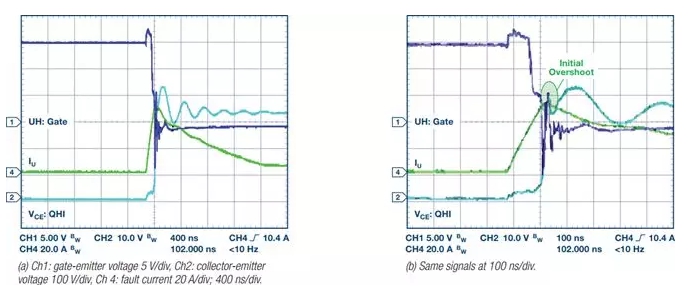 一般而言,電機可在相對較長的時間內(毫秒到秒,具體取決于電機尺寸和類型)吸收極高的電流;然而,IGBT——工業(yè)電機驅動逆變器級的主要部分——短路耐受時間為微秒級。
