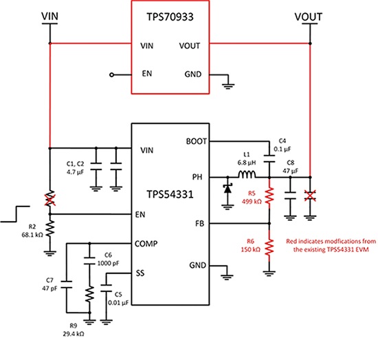 圖3:TPS709與TPS54331并聯(lián)(由德州儀器公司提供)。