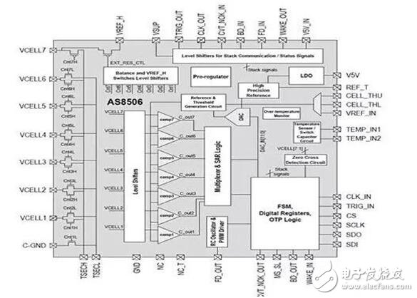 現已有汽車鋰電池的全新管理技術可以應用,此技術采用可進行區(qū)域監(jiān)控的新IC。電壓測量以模擬功能執(zhí)行,通過比較器將電池電壓與參考電壓做比較。